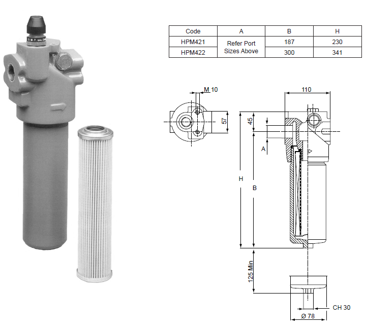 | HPM422*NR | High Pressure Filter | 140 LPM | 3/4” BSPP | 6 BAR | 420 BAR | 6000 PSI |