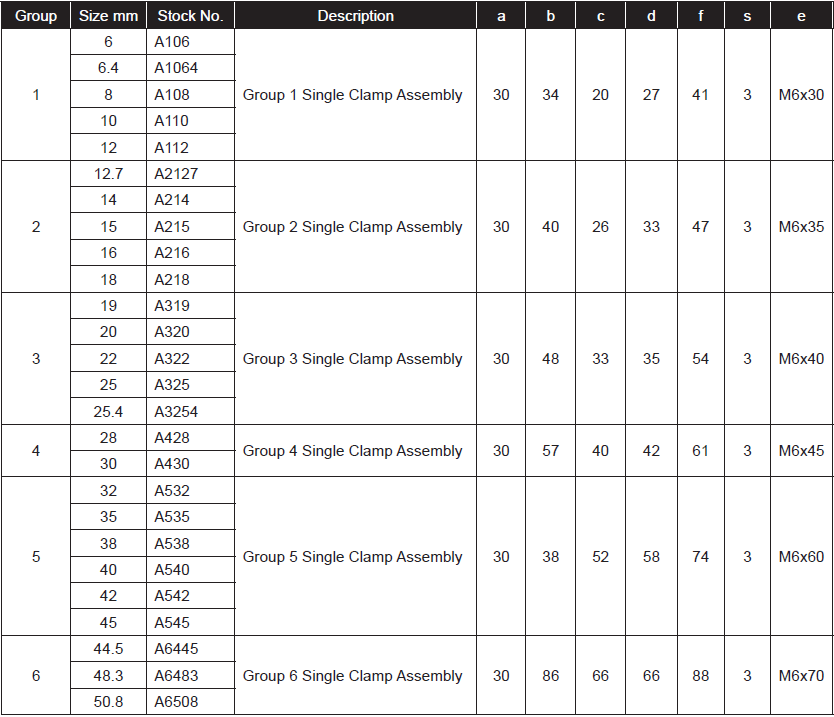 Single Pipe Clamp Assemblies